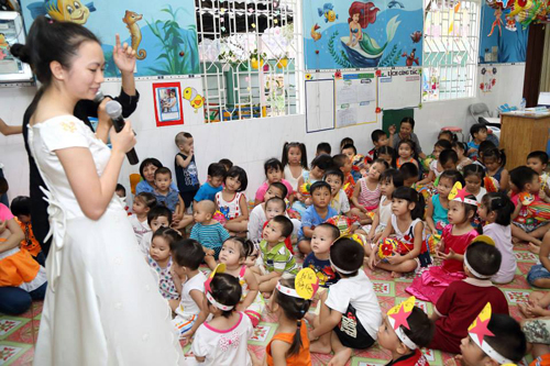 Cô Hằng Nga vui chơi và kể chuyện cho các Bé nghe về Đêm Trung Thu ! — tại TRƯỜNG MẦM NON GIA ĐÌNH HẠNH PHÚC.