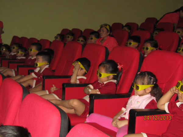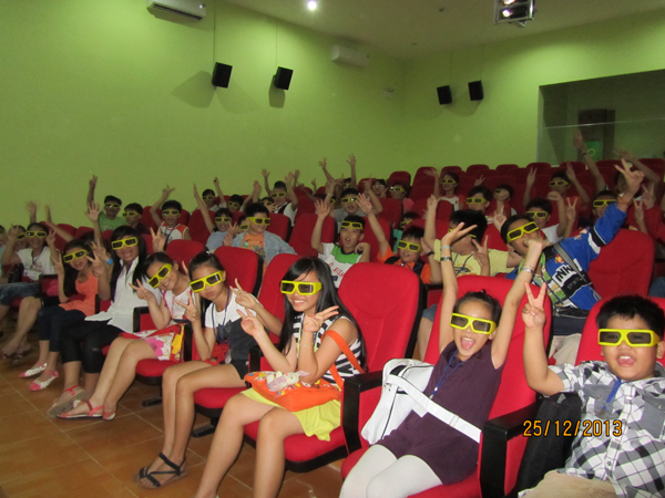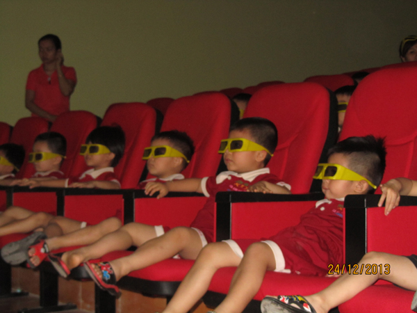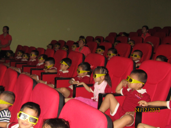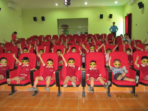 Hoạt động ngoại khóa với các bé trường mầm non Gia Đình Hạnh Phúc đi xem phim 3D