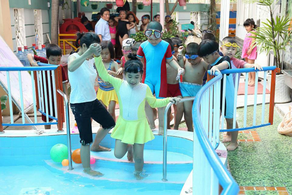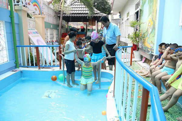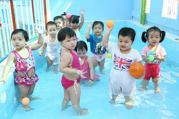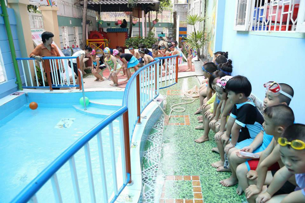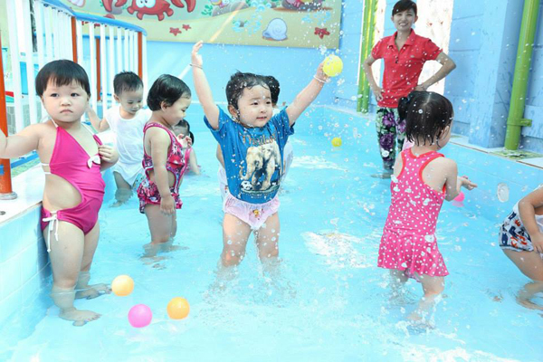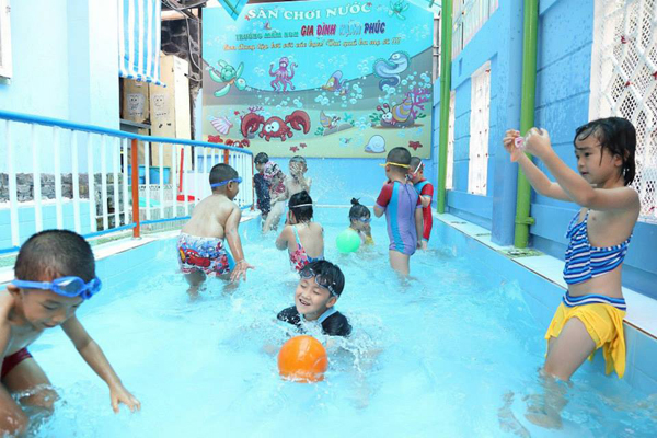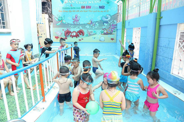 Học bơi lội tại trường Mầm non gia đình hạnh phúc
